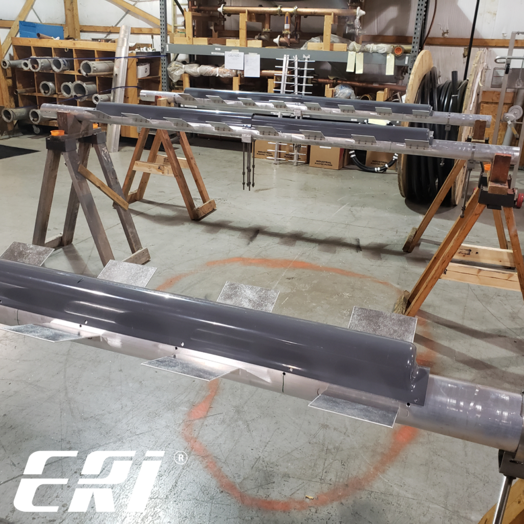 A new three-bay LPX Series ROTOTILLER® FM Antenna has been tuned and is now under a pressure test to confirm the assembly does not leak air. After the test, the antenna will be painted and packed for shipment to the customer. The LPX-3E end-fed array is rated to handle up to 9 kW, and it is available with radomes or electrical deicers for installations in harsh Winter climates.