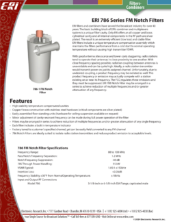 The ERI Model 786 is a compact FM Notch Filter rated to handle up to 55 kW. It is available as a single cavity or multiple cavities can be combined for higher suppression of a single frequency or rejection of multiple FM channels.