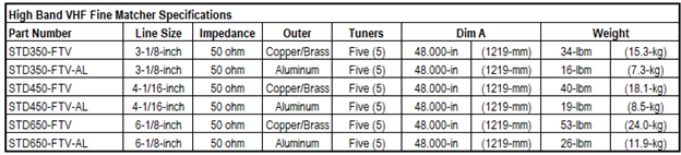 High Band VHF Coaxial Fine Matchers