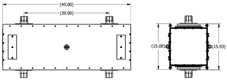 The HY0241 is a 3-dB, 90-degree Hybrid Coupler that combines the power of two FM transmitters. The hybrid can also be used as a power divider. All standard models are “cross-over” designs, so when used as a combiner, the inputs are on one side of the hybrid, and the load port and combined output are on the opposite side. The input port opposite the combined output lags the other input by 90 degrees. The hybrid is available with any combination of 1-5/8-inch, 3-1/8-inch, 4-1/16-inch, and 6-1/8-inch flanged male ports. They are constructed of lightweight aluminum and can be designed to have coupling ratios other than 3.0 dB. Power handling is dependent on flange selection. Models can handle up to 120 kW at the combined output (2 x 60 kW).